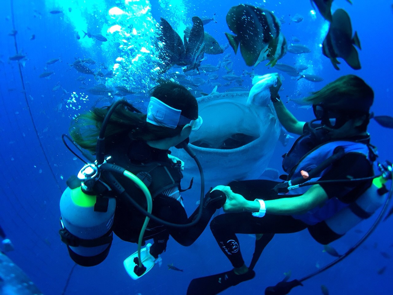 私たちがご案内する『ダイビング』とは、海に潜る『スキューバダイビング』を指します。 一般の方は、レクリエーショナルダイビング以外を行なうことはまずありません。 レクリエーショナルダイビングは、ダイビングライセンスを取得する前の体験ダイビングで楽しめる深さは12mです。 ダイビングライセンスを取得し、初級のダイビングライセンスで潜れる深さは18mです。 ステップアップ度合いにより、中級のダイビングライセンスになると潜れる深さの最高は30mになります。 水深20〜30mというのは、スキューバダイビングのとても楽しく見どころのたくさんある素敵な水深なのです。 30m付近まで潜水すると、まず水の透明度に驚きます。続いて、魚の種類や量が増えます。 そして人の手が入らず自然のままに形成されたダイナミックな漁礁、海底に沈んだ飛行機や沈船(レックダイビング)に冒険心が掻き立てられるのです。 当店では、これらの魅力的で大変オススメできる水深でのダイビングも数多くツアー開催しております